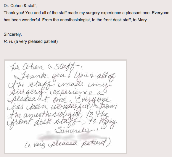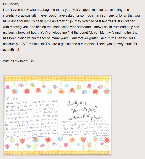 Please feel free to take a look at some of the reviews left on Google, Yelp, and RealSelf.com by Dr. Cohen’s patients. This will offer a better sense of what you can expect when you meet with him in person.